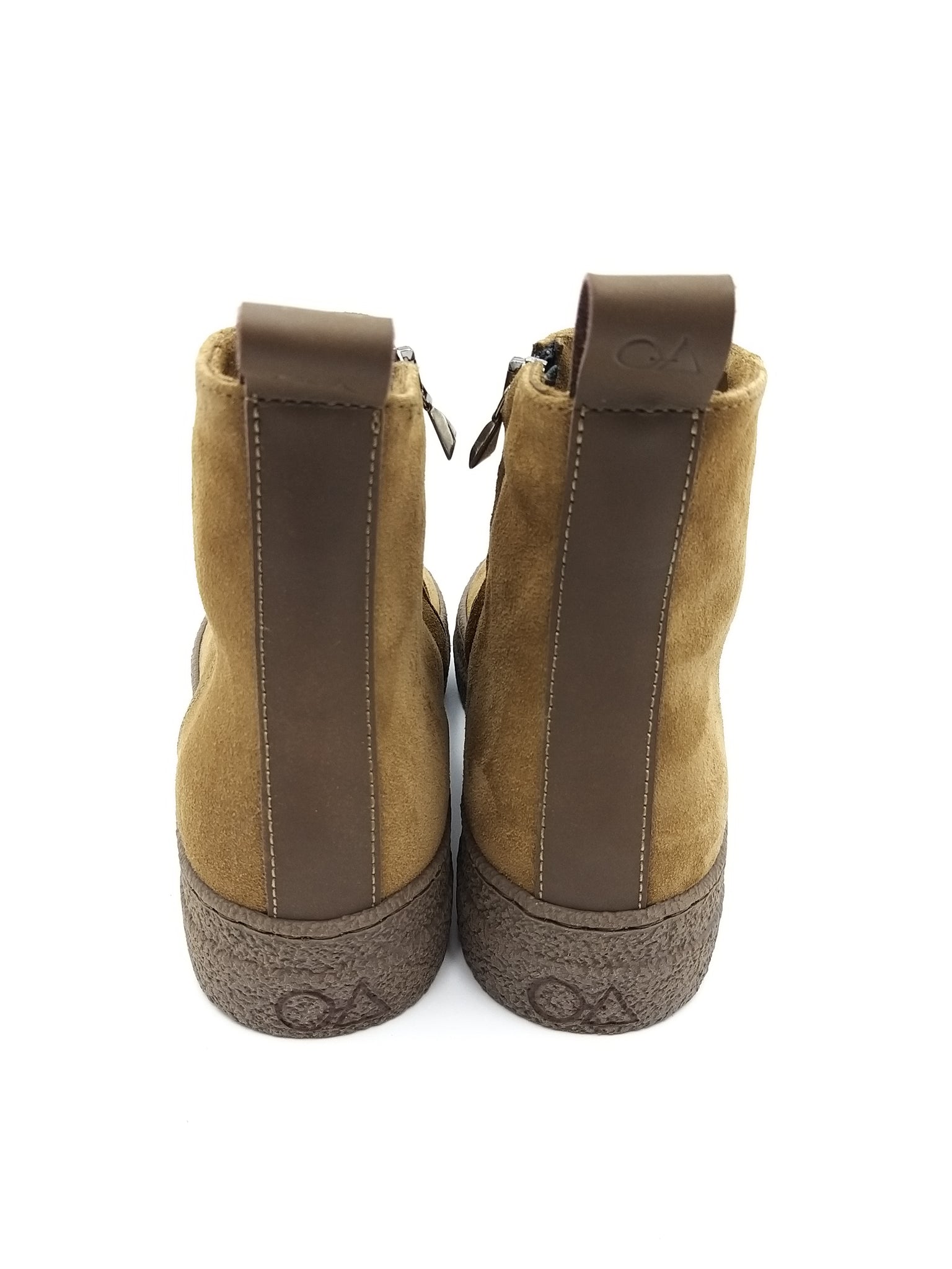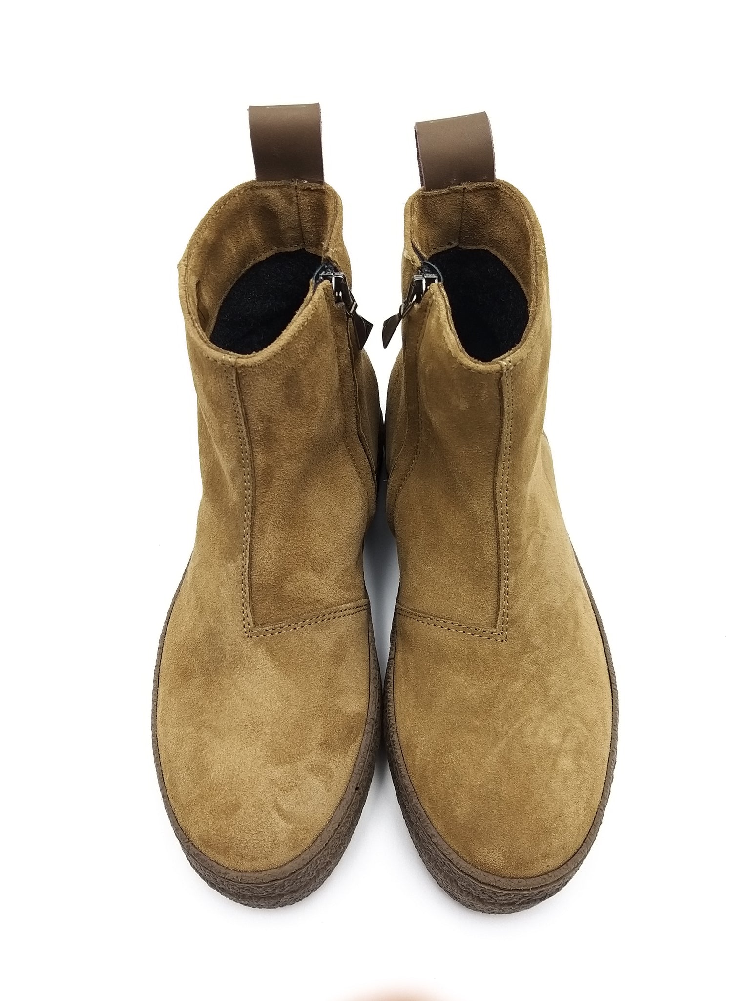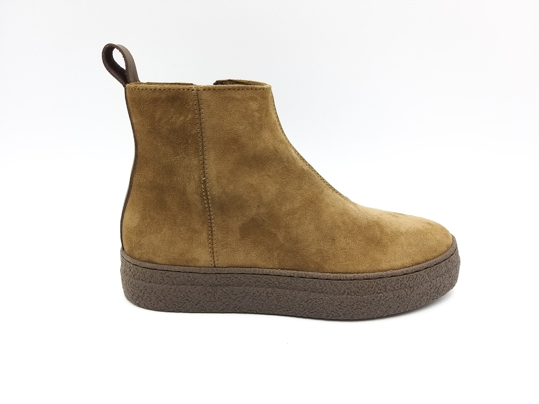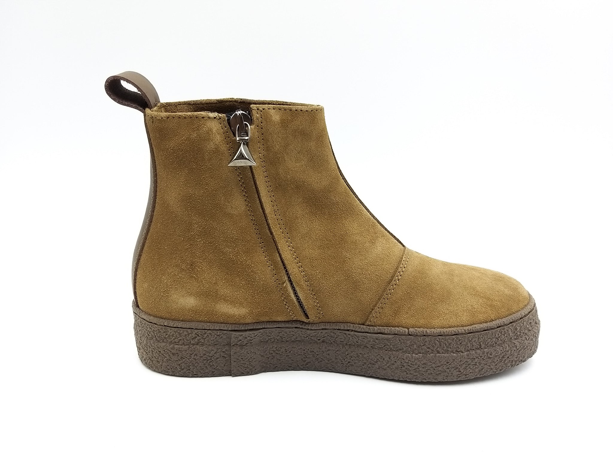 Polacchino con chiusura lampo in camoscio vegetale color tabacco